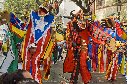 The Vejigantes were the highlight of the parade. Some were like giant puppets, twice as tall as the guys operating them. Very colorful, very impressive.