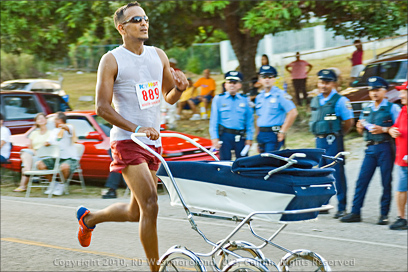 It took about 40 minutes for the front runners to pass our position. They were being lead by a huge escort of Coamo Police on motorbikes. Pretty impressive. Video crews on motorcycles were shooting the runners as they went by us. The partying moved into full gear once the last of the contestants trickled past. It went on until the wee hours of the morning. WooHoo!