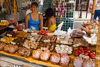 As can be seen in the photos, there was quite the range of products available. My shots only cover about 10% of what I saw. Besides the items in the photos, items crafted from wood ran the gamut from simple key fobs, to name plaques, to spinning tops and mechanically actuated wooden toys, to intricately carved art and religious icons of all kinds. There was also lots of homemade candies, fresh honey, and an assortment of hot sauces and condiments. Leather goods were very popular, sporting very unique designs.