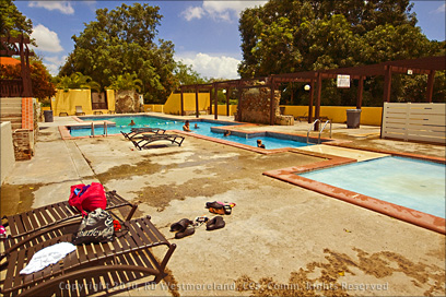 As legend has it, Ponce de Leon made the trek to these natural hot springs where the infamous fable of the “Fountain of Youth” originated. He’s also the namesake of Ponce. A hotel was established in 1847 and has been in existence in one form or another, ever since. It has attracted much international attention over the years. A quiet, laid back place to go and unwind and soak up the warm mineral waters. As late as the mid 1990’s, it was still quite private and reserved. Lots of open pasture. The locals used to go down to the river next to the resort to swim and picnic. This public access is now closed off. In late 1990 a golf course and country club was put in next door. One of the largest golf courses on the island. In the last 10 years, 2 ‘up-scale’ cement subdivisions were built near by. A GoogleMap (terrain view) confirms all this.