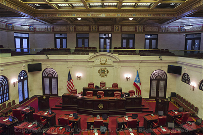 The Mahogany used to furnish both chambers was harvested locally and crafted here in PR. The chambers themselves feature ornate ceilings with lots of ornate molding.
