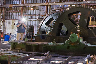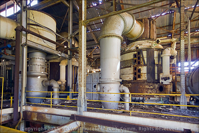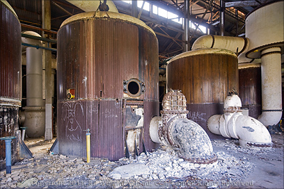 We made our way up inside one building where the huge sugar crystalizer vats stood.