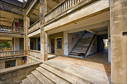 Old Aguirre Central Hotel Second Floor Detail in Puerto RicoFor photographers that want to know: High Definition Range (HDR) is done by taking a series of 3 or 5 or more bracketed shots from the same position and combining them into a single finished image. This will inevitably produce a shot with longer, more dramatic tone and more vivid color. I work from within Photoshop via a plug-in, but there are dedicated, free standing apps that can do this too. Very dramatic results can be produced this way. Unfortunately HDR has been over done lately, verging on a fad.