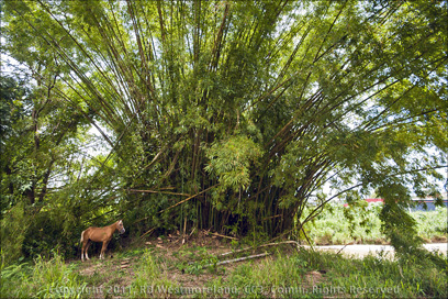 There was a large cluster of bamboo culms next to the shore with a horse standing in its shade. Without the horse you would have no sense of scale regarding the bamboo. It was a mature, full grown horse too. Bamboo like this, grows all over Puerto Rico, but it’s most common up in the mountains and along the eastern shore.