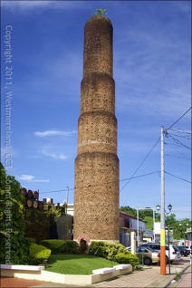 As I got near the plaza I spotted a style of sugar mill chimney I had not seen before. Most chimneys are red brick, square and taper towards the top. This one resembled a ship’s cannon from an old black and white cartoon. It had become a fixture for a local restaurant. Different.