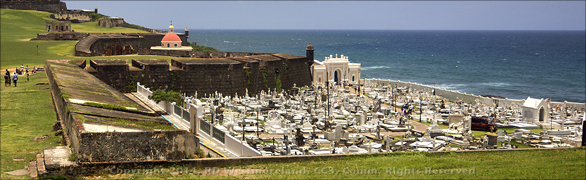 This cemetery is located to the west of El Morro near the bottom of the hill and adjacent to La Perla. A narrow road leads down to the cemetery via a short tunnel. It’s best to walk this as there is no place to park, once you get to the cemetery.