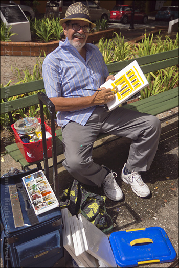 On the way there, we came across an old guy doing small paintings for the tourist trade. He graciously allowed me to photograph him working. I regret I did not get his name.