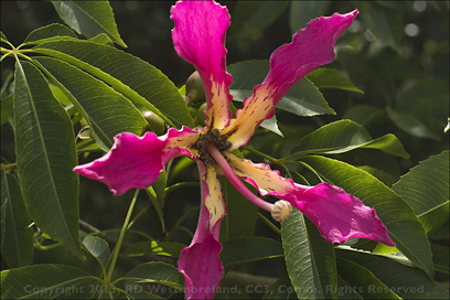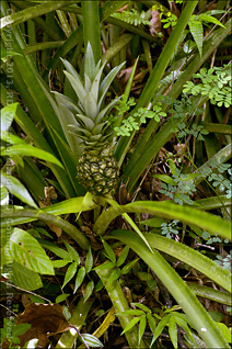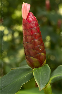 Just down from there, we stopped to check out a collection of flowering Gingers. The shot of a dark rose colored cone-like flower with a single pink petal is edible. Bryan broke off the petal for us to try. It was delicious. It had a very mild, subtle flavor with absolutely no aftertaste.
