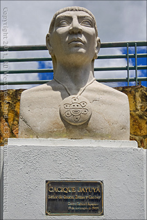There are several places to pause along the way and sit making it possible to take in the great view of the area. At the top of the stairs is a bust of Cacique Jayuya, the indigenous chief of Jayuya and the tomb of a Taino Indian discovered in an archeological dig. (behind a locked vault).