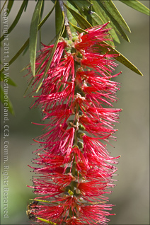 There is this unique collection of trees down by the concrete stairs that had flowers resembling flurescent red bristle brushes. Bees were busy working them over. I have no clue what it’s called.