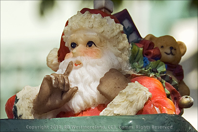 We also found a plastic Santa figurine, stuffed in a metal fence post, out front of a tenement complex keeping vigil. Most appropriate.