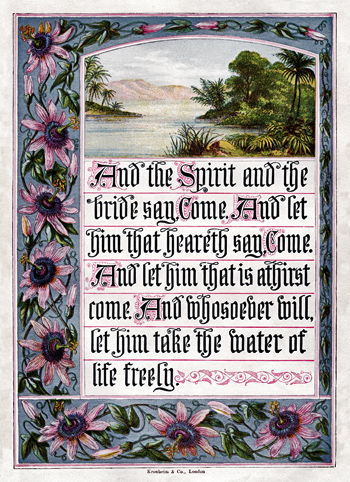 I’ve included an illustration done in 1880 by Joseph Martin Kronheim. It demonstrates the popularity of Parcha, dating back to ‘olden times’. The blossoms of Parcha are very beautiful, though short lived. They seldom last more than a day. A fleeting moment, at best. A perfect complement to the verse.