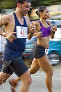 The guy with the empty baby carriage from last year was back with a real baby this time and I saw the COAMO Letters run past as well. Five guys who run the race, almost arm in arm. Media was out in force too. Video crews were shooting the leaders and a helicopter was tracking the runners from above.