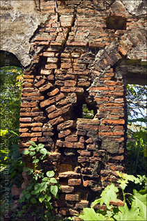 As you can see in the old wide shot, there was a time when you could walk around the grounds to photograph it. Today, there is a chain link fence right up next to the ruins.