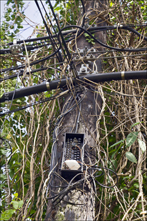 In that 3 years, we have had many promises to come out to our place, but no one has ever showed up. We live just outside town near the end of hardwire service. The shot of the busted telephone pole is not far from the house and has been that way for several months now. The other shot of the pole is right off our driveway. It sat like that for several weeks, but it has since been cleaned up… some.
