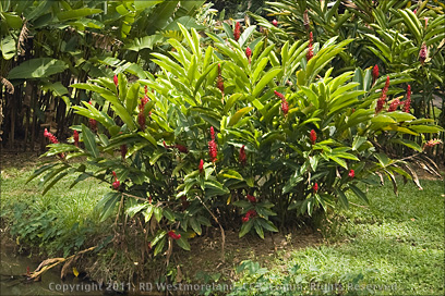 There were several examples of tropical hardwoods in this area. the Jungleflame Ixora hedges bounding both sides of the narrow cement walkway were overgrown with spider webs. I’m used to that out where we live so I grabbed a dead branch off the ground and knocked them back so I could get by. A minor inconvenience. There was a small stand of Freycinetia Multiflora.. of the Pandanaceae family from Papua, New Gunea. It resembled bamboo at a distance.. a hearty looking shrub.